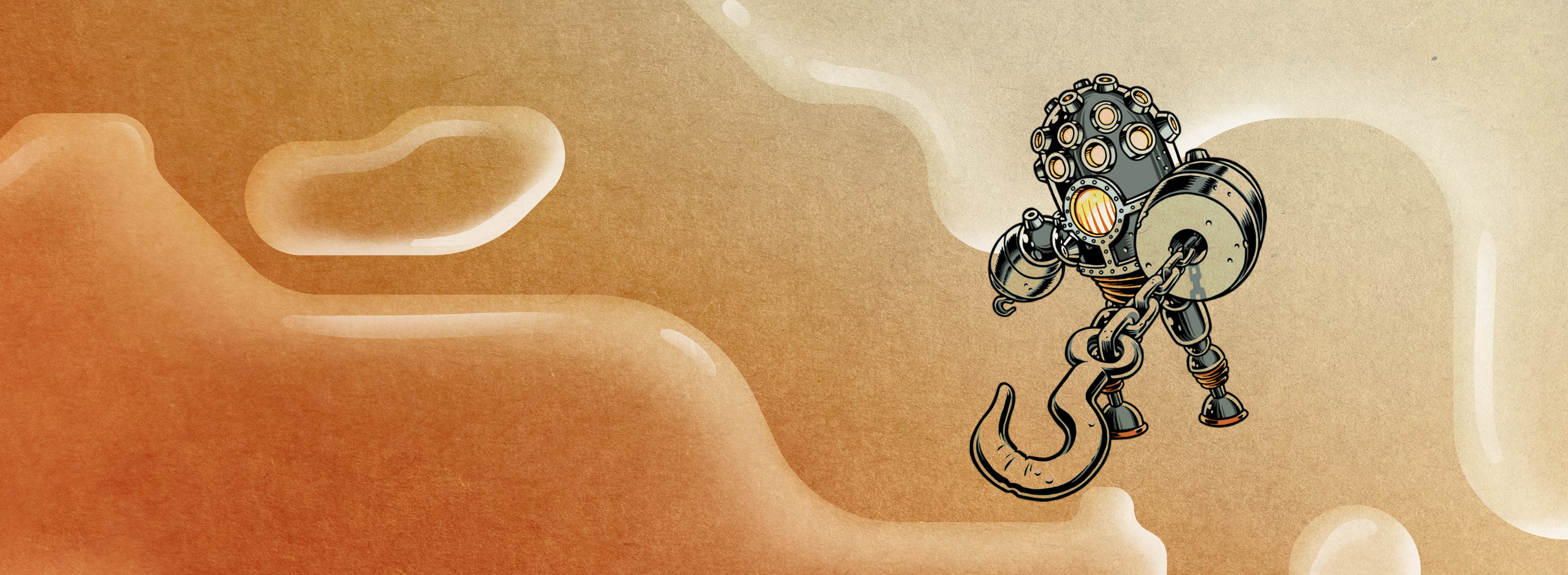 After further brainstorming in the pub, Clock was chosen as the best name. We were looking for something that had something to do with technology, precision, mechanics. Also, the first sketches of the robots were quite steampunk. It was quite fitting.